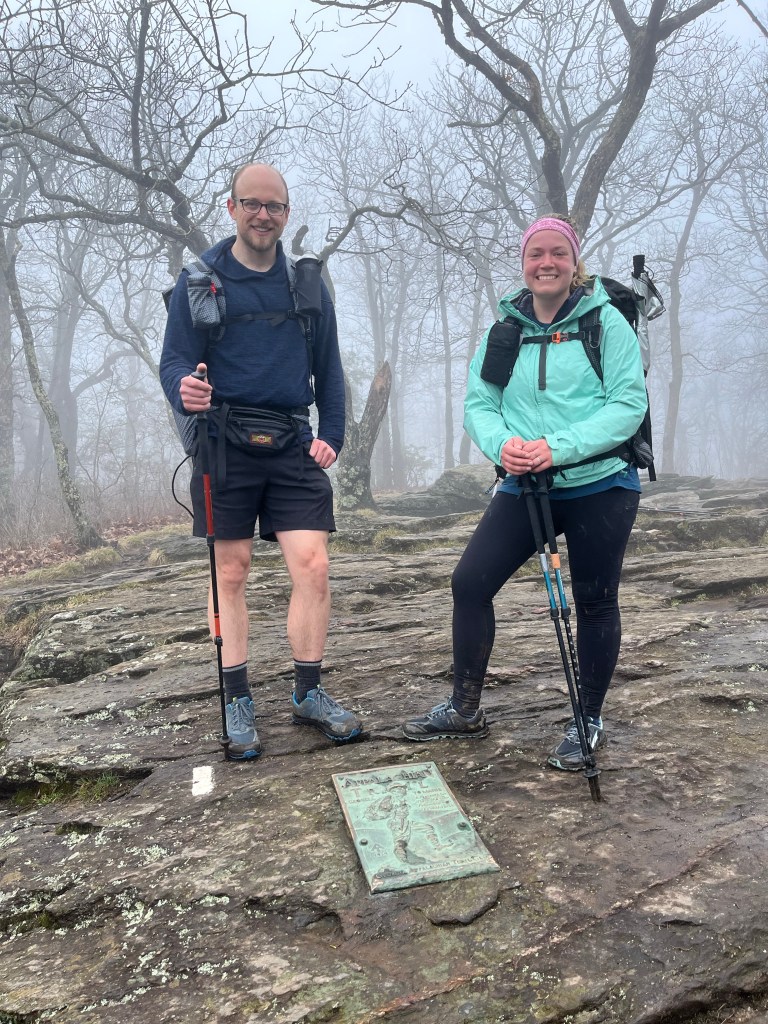 Day 0, Wednesday, 3/16 – I registered as an Appalachian Trail thru hiker this morning. Then Mom, dad, Taylor, Freddie and me all hiked up Amicalola Falls this morning. The falls were stunning, maybe all the rain last night played a part. Mom and Freddi stopped their hike at the top of the Falls. Taylor, Dad, and myself hiked to Springer Mountain. There were a ton of people starting their through hike journey today. Excitement was high, it seems like most people are hiking solo.