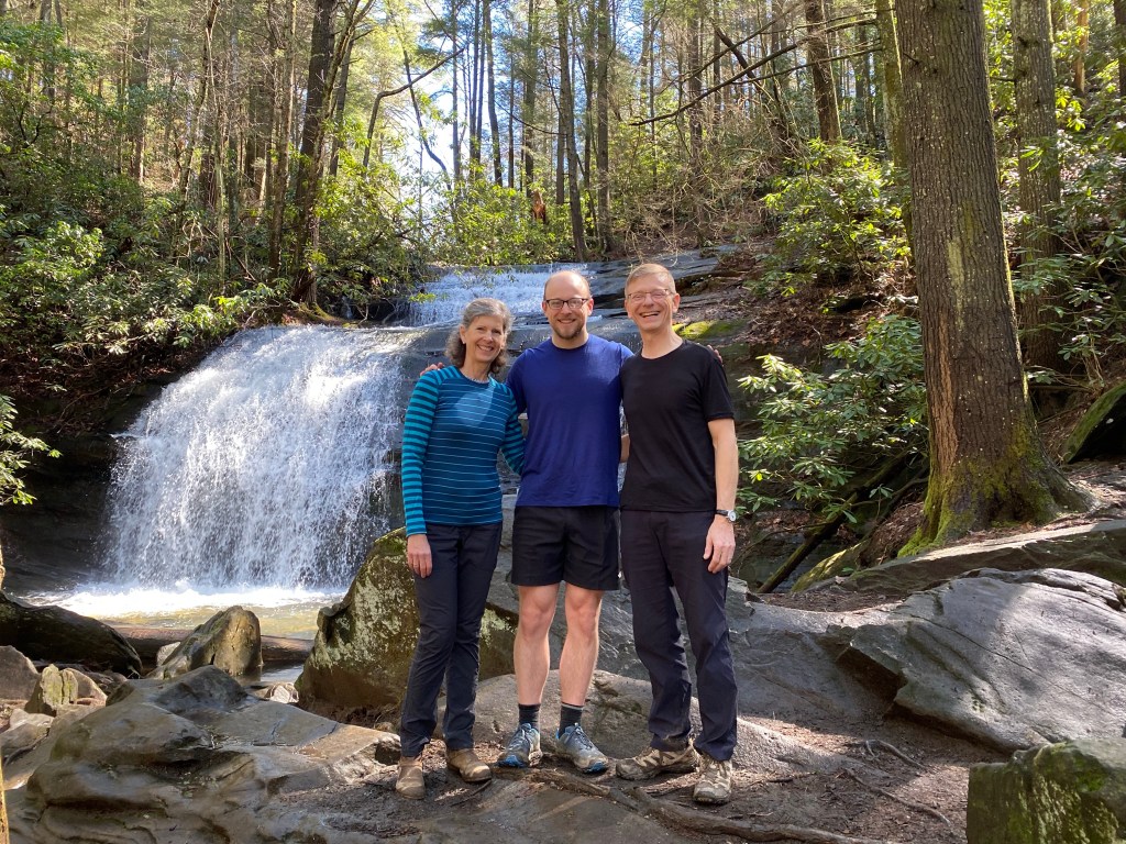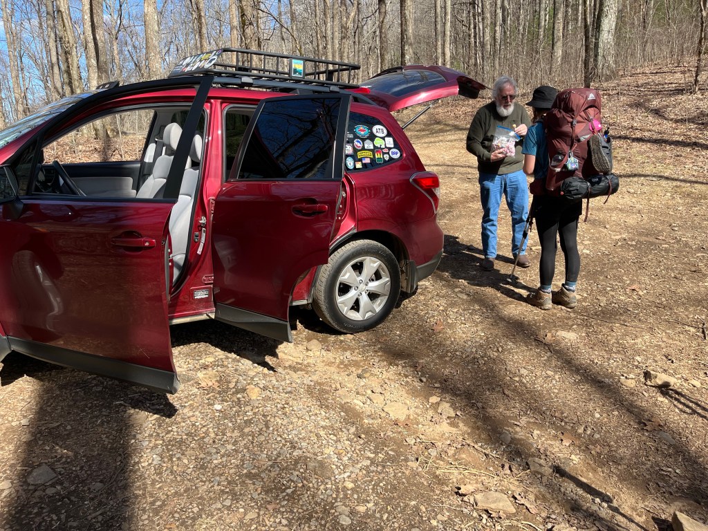 Day 1, Thursday, 3/17 – I started the day with mom, dad, and Taylor. We drove back to Springer Mountain, to pick up hiking where we left off yesterday. We all hiked to Long Creek Falls and had lunch together. Long Creek Falls was a bit off of the Appalachian Trail, but well worth the extra steps. Dad and I helped another thru hiker who was having pack problems along the way. I don’t remember his name, but he was 79 years old, and was carrying a 40lb+ pack.