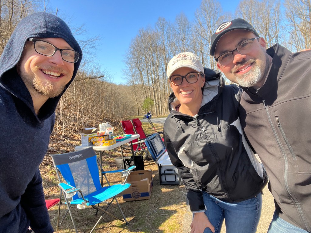 Shortly after, I ran into Bridget and Mark, who were trail angels. They had all the provisions a hiker could want. Candy, chicken wraps, Gatorade, ibuprofen, etc. Bridget had done a 20 mile section hike a year ago and ran into trail Angels at that exact spot, so she’s paying it forward. They were only set up for 2 hours, so I timed it perfect!