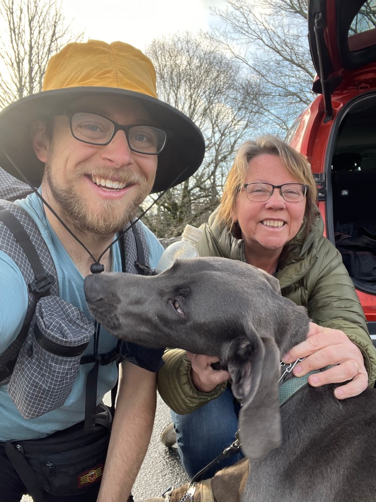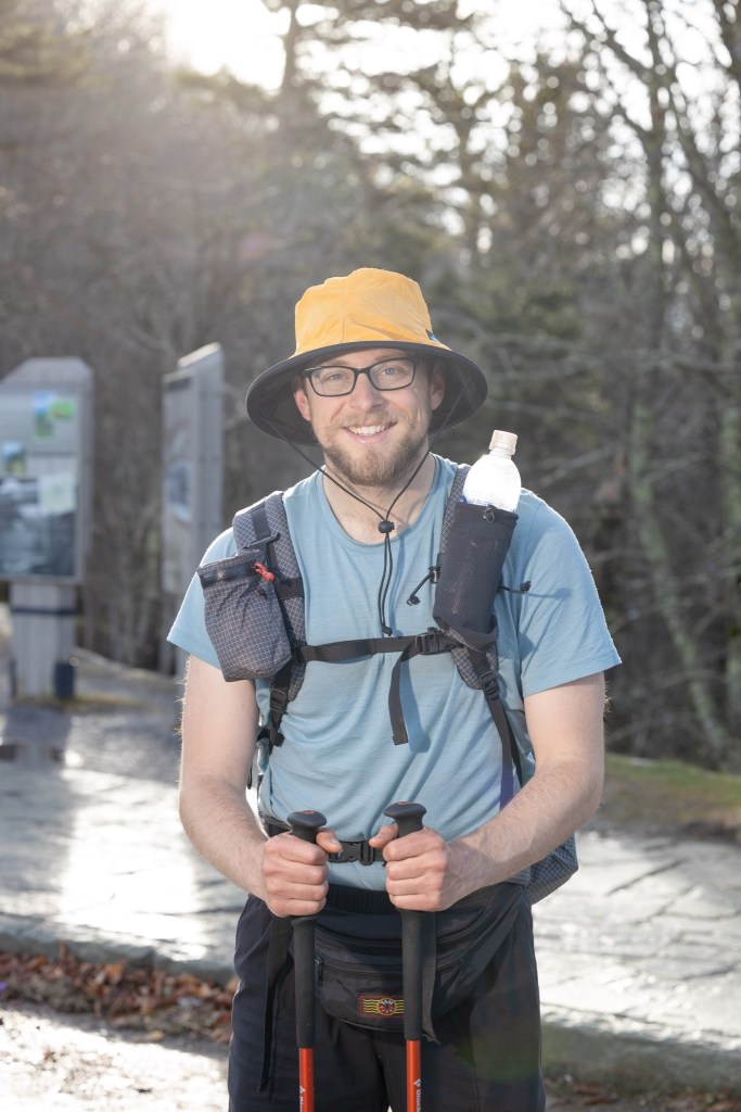 Newfound Gap is a popular parking area, and we had heard that there was frequently trail magic. We heard right. We got to Newfound Gap at about 9am, and we were greeted by Stephanie. Stephanie is a photographer, and she was taking portraits of thru hikers as they passed through. Very unique trail magic! Below is a photo of me with Stephanie and her dog Bronx. I also attached the portraits of myself, Sprite, and Jeff.
