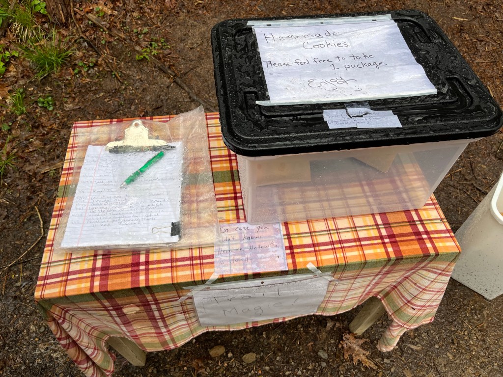 I ran into some trail magic along the way, someone left homemade cookies in a Rubbermaid bin. So delicious.