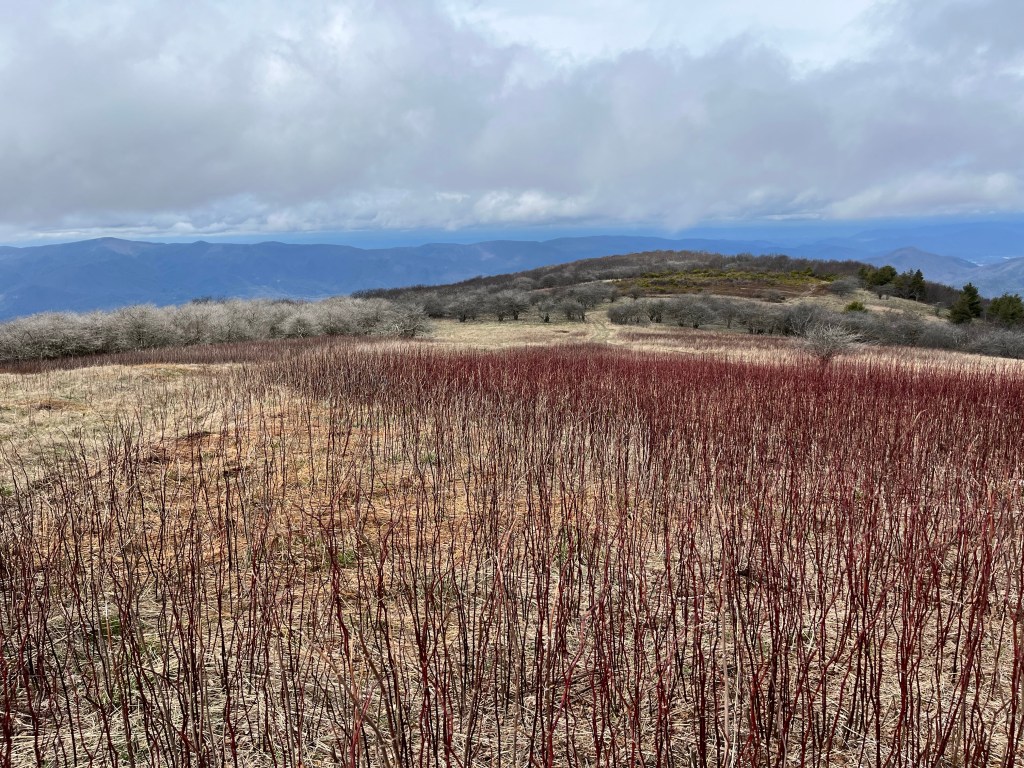 We started hiking a bit after 10:00am. There wasn’t any rain today when we started hiking, but there were a lot of stormy looking clouds. We were hiking over 2 balds today, Big Bald and Little Bald. A bald is a mountain without any trees, so they typically offer a great panoramic view. So with the clouds, there wasn’t much hope for a good view. But, it turned out to be a really neat experience.