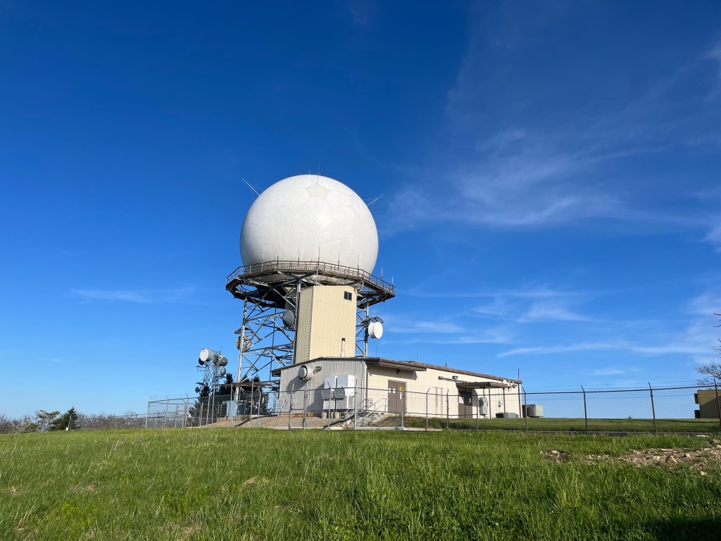 We got to the Apple Orchard Mountain, and came across a giant soccer ball looking structure. I’m guessing it’s another air traffic control facility.
