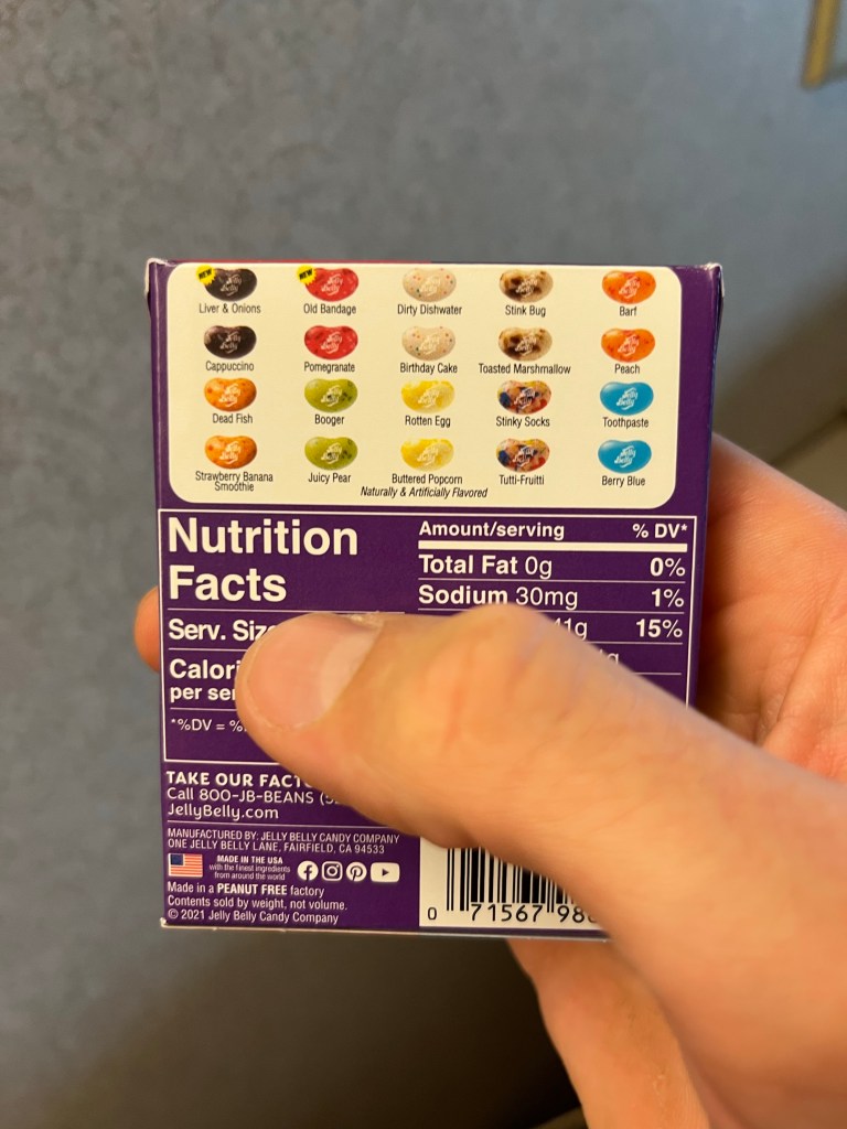 I introduced the group to Bean Boozled. It’s a box of jelly beans that has tasty beans mixed with nasty beans, and they look identical. You don’t know if you’ve picked a nasty flavor until it’s too late. We made a game where everyone eats a jelly bean at the same time. By the reaction, it’s immediately clear who the unlucky ones were.