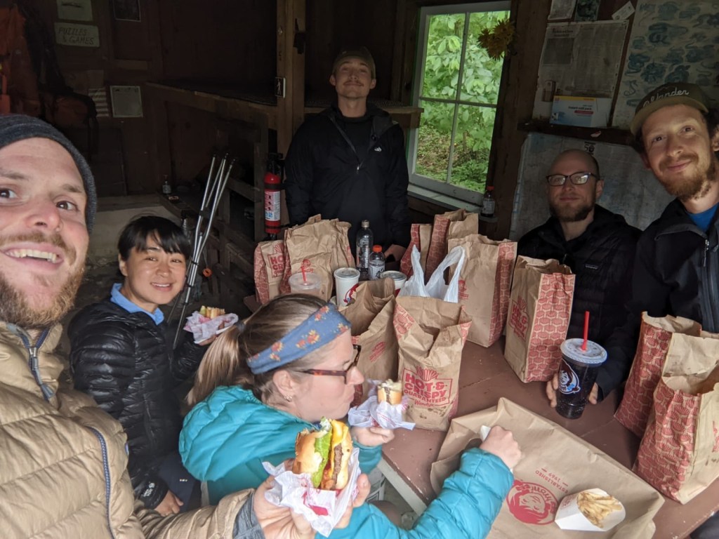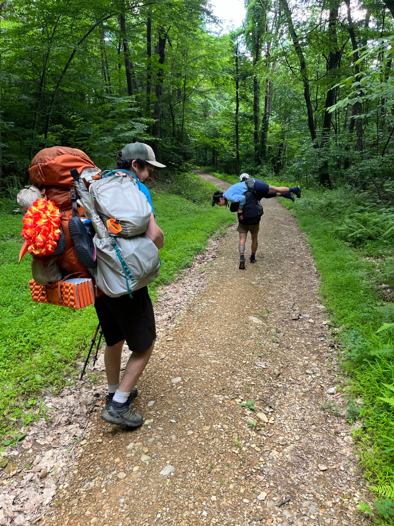 Day 94, Saturday, 6/18 – Dog Fish’s knee was in bad shape this morning. It’s a pain that she has had in the past, but she said that this was a particularly painful episode. She tried to walk, but wasn’t able to put any weight on the injured leg. To avoid further injury, Birthday and I carried the packs so that Half Time could carry Dog Fish to the next shelter. Luckily, the shelter was 2 miles downhill, and there weren’t many rocks.
