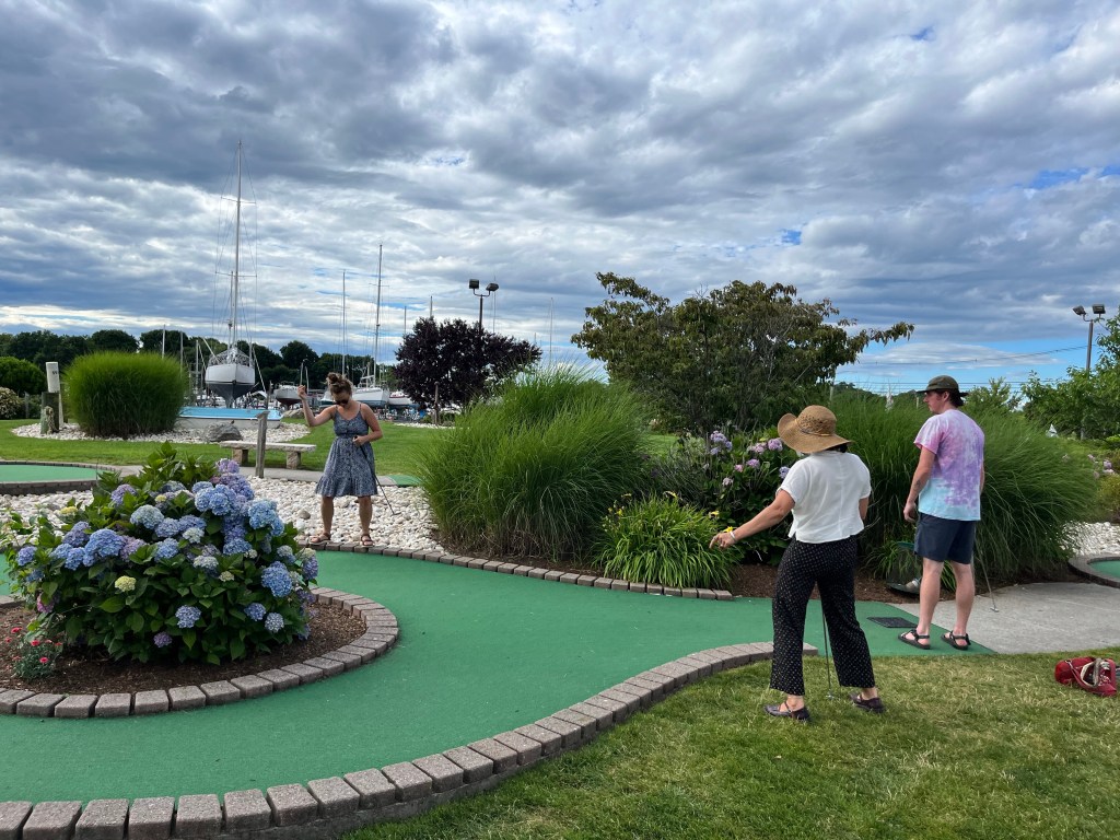 Early afternoon, we stopped by Angie’s place, then met up with her friend Taylor at Sunset Grill for oysters and appetizers. We followed that up with a round of mini golf. The mini golf place was playing some classic rock music which everyone was vibing to.