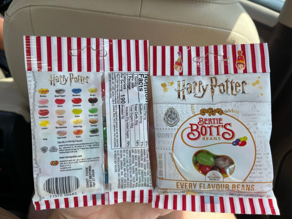 We ran some errands during the afternoon, and I completed my food resupply for the next few days. There was a Party City next to the grocery store. They didn’t have Bean Boozled, but they did have Bertie Botts beans, which have sufficiently gross flavors to keep the gag going.