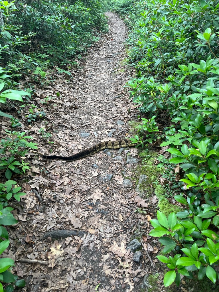 I kept hiking and came within 6 feet of a giant rattlesnake before I realized what it was. The snake was seriously thicker than my wrist. I waited for a bit to see if it would slither away. It didn’t. I needed to get by, so I took my trekking pole and lightly tapped its rattler. It started rattling at me, then slowly slithered into the brush. I made sure it was far away, and not coiled up, before I passed it. It still rattled at me when I went by. It makes me wonder how many rattle snakes are hiding in the brush just off the trail that I never notice.
