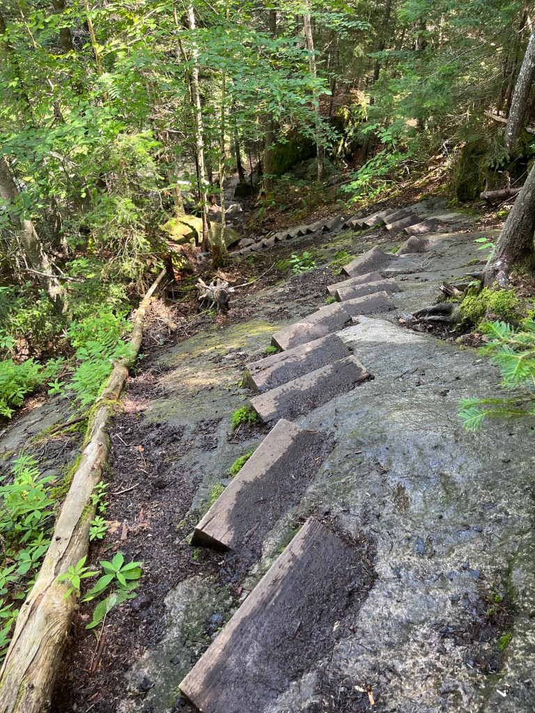 I hiked down from Moosilauke, which was a beautiful hike and paralleled a waterfall most of the way down. It also happened to be incredibly steep and somewhat of a rock scramble. My knee hurt from my fall, and the descent was more difficult because of it. But, I took it slow and got through.