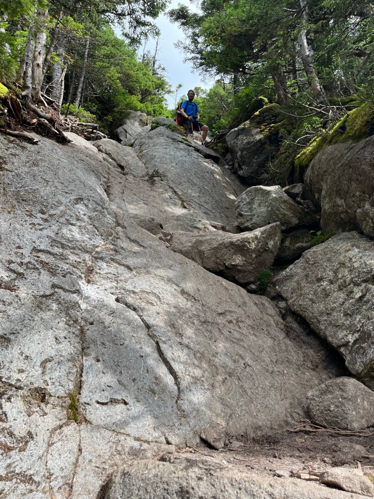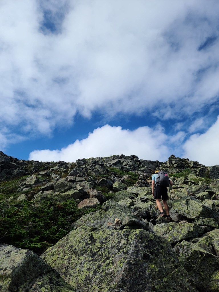 The first 5 miles of the day were relatively easy. We hiked past Ethan Pond, then down to a road crossing. That’s where the hike got tough. We had 10+ miles and 5,000+ ft of elevation gain in front of us. The trail wasn’t easy either. The climb up Mt Webster was essentially a rock scramble.