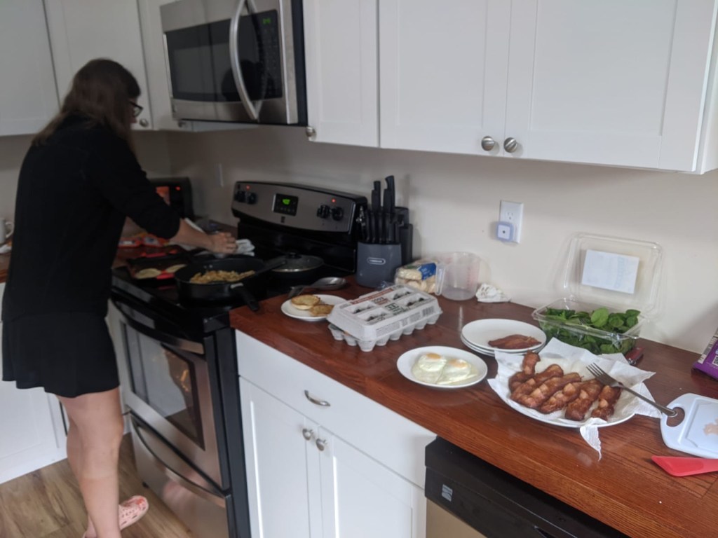Day 139, Tuesday, 8/2 – I woke up and headed out to the kitchen. Aqua was just waking up as well, so we got some coffee going. Genie and Splitzy got up a short while later and made up some delicious breakfast sandwiches.