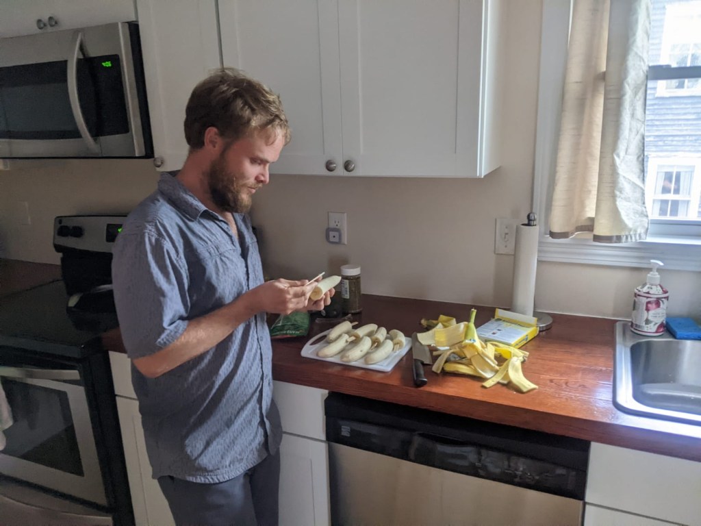 Aqua cooked us all chicken fettuccine Alfredo for dinner, which is one of her favorites. Genie followed it up with frozen chocolate bananas, which was definitely inspired by all the Arrested Development we watched.