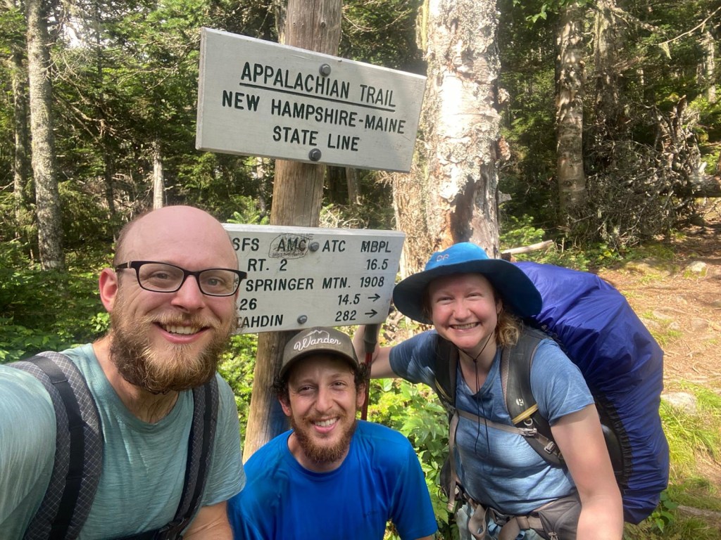 We descended off of Mt Success and crossed the border into Maine. For the entire trail, when someone asks me where I’m hiking, I’ve respond by saying “Maine.” I suppose that answer is inadequate now, seeing as I’m in Maine now. We met Pivot at the border, who was a SOBO hiker, excited to leave Maine. We talked for a while and shared intel about was coming next. We hiked on, and the minute we crossed the border into Maine, it started raining pretty good.