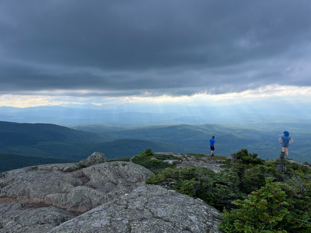 We climbed to the top of Goose Eye West Peak, and had an awesome 360 degree view. There was a beautiful sunburst coming through dark clouds. We could also see the Presidential Traverse way off in the distance. This was definitely the highlight of my day.