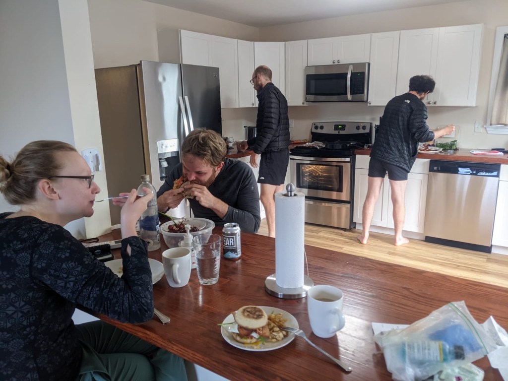 By 9:00am, we had all packed up and cleaned the Airbnb. We coordinated a ride back to trail with Ziggy, who picked us up right at 9:00am. We got dropped off at the Pinkham Notch Visitor Center, which is where we got picked up from trail the other day.