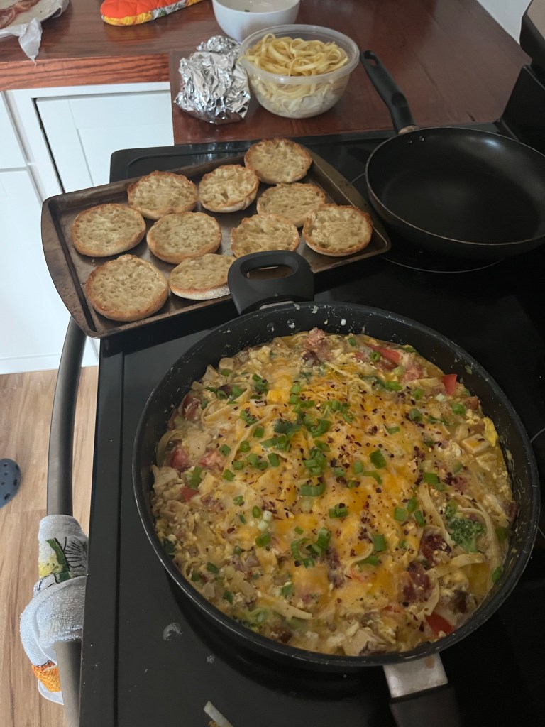 Day 140, Wednesday, 8/3 – Similar to yesterday, I started off my morning with a few cups of coffee. Genie then got breakfast going, and made a scramble with all the leftovers. It was an interesting concoction, and definitely had enough calories to keep me full most of the day.