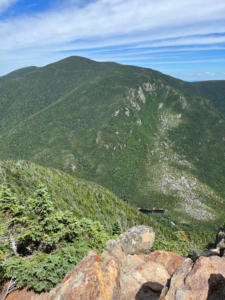 We got to Mount Hight, which had a gorgeous 360 degree view, and a great view of the Presidential Traverse. We considered camping there, but the good tent sites were already taken up.