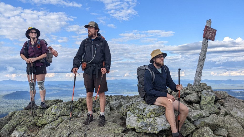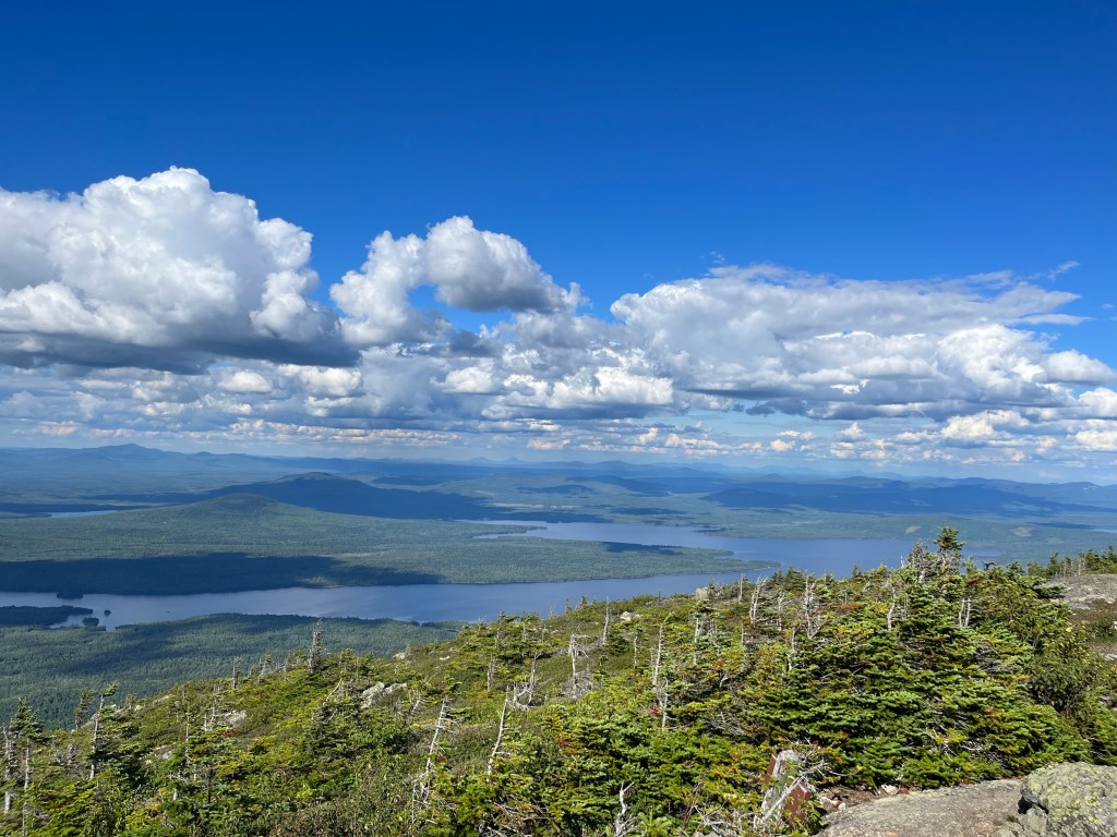 We hiked the Bigelows today, and they were absolutely beautiful. We had phenomenal 360 degree views from the peaks. We also had our first look at Katahdin. It was a barely visible silhouette way off in the distance. Even still, the end is in sight, and I mean that literally.