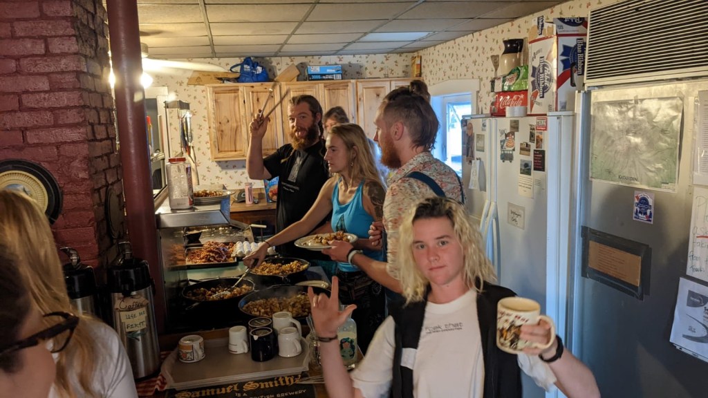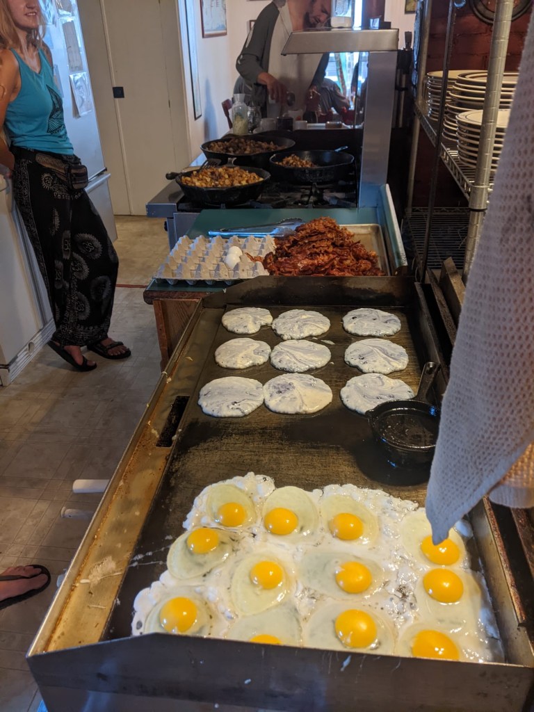 Day 156, Friday, 8/19 – I woke up and had breakfast with Birthday, Genie, Splitzy, and a few other hikers. The breakfast here is out of this world. Shaw’s really has it down.