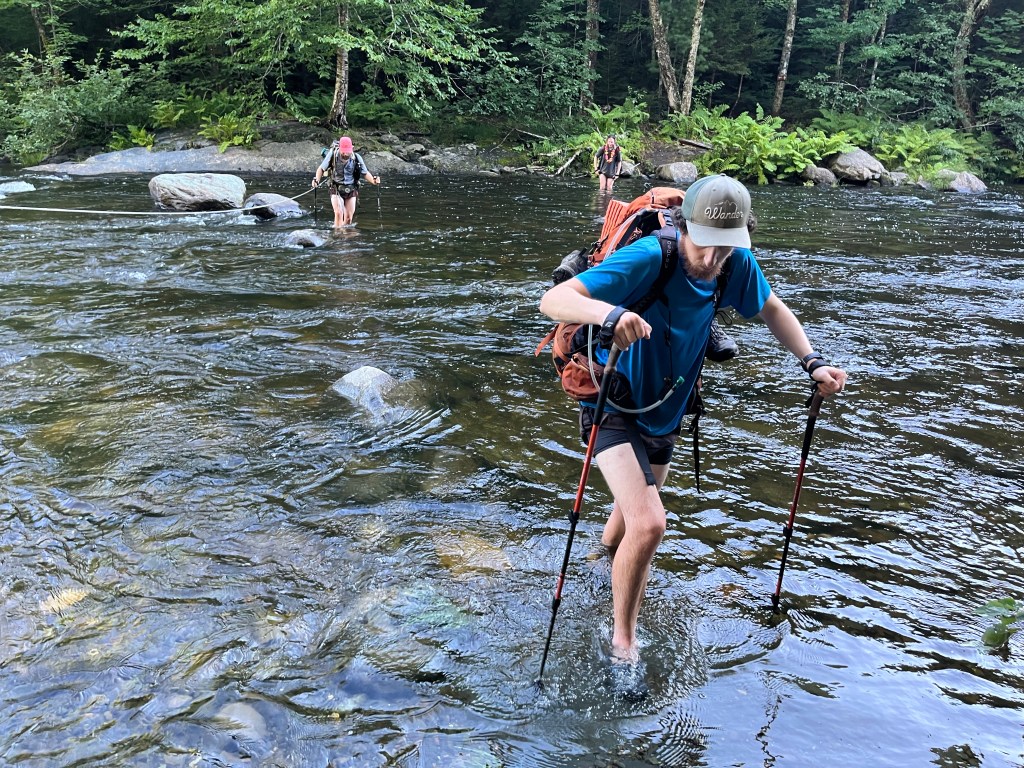 I hiked with Chompers and Stretch for a bit, then also hiked with Birthday, Tiki, Genie, and Splitzy. We had 2 major river crossings today. I don’t have camp shoes, so I opted to go barefoot to keep my shoes dry. I took my time, made sure I had solid footing, and made it across both rivers without going for a swim.